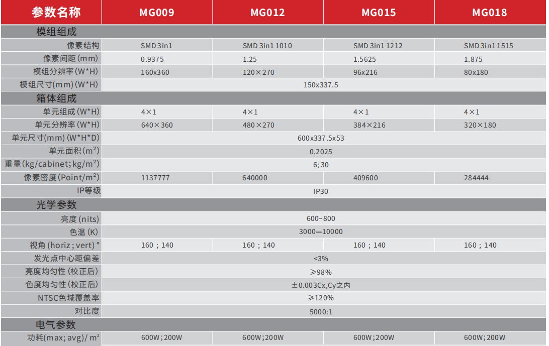 MG 系列定位于主流小间距产品, 600mm 宽度和 16 : 9 宽高比,具有全前维护的特性,降低了客户使用门槛。 MG 系列采用了极简设计理念,将BG大游小间距产品的多年设计经验浓缩成 MG 的核心性能中,在保证高质量视频显示效果的同时,降低了客户总体拥有成本。外观经过精心设计,在优美的外形下包容了关键组件的同时,还添加了功能检测功能,同时保证系统的良好散热。 MG 可选电源备份,标配信号环路备份。