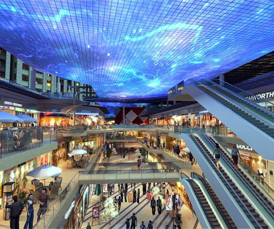 LED天幕系统在设计上拥有炫彩的LED显示,配以三维声像扩声系统,完美的做到了影像—声音同步。吊装在天花顶上的大型LED天幕屏宛如一条色彩艳丽的绸缎、明亮深邃的天空,再配合以新型LED灯条、灯带、射灯等照明设备,起到一亮化、渲染作用。置身其中给人以视觉冲击力强的震撼视觉和听觉体验,成为高大上室内显示屏,与建筑物浑然天成,溶为一体。