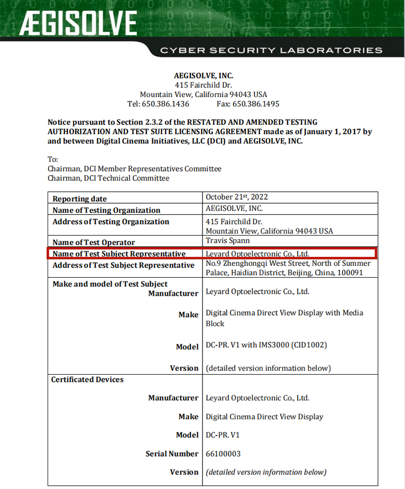 众所周知,DCI是目前国际通用的数字影院系统认证标准。受该规范限制,未获得DCI认证的数字电影系统或产品无法在电影市场上进行应用推广。2022年10月,BG大游拥有完全自主知识产权的LED电影屏获得好莱坞DCI认证。基于此,BG大游布局影院市场的脚步,再进一步。而通过中国国家强制性产品认证、中央宣传部电影技术质量检测,则意味着BG大游将在国内数字影院市场开启新的篇章。