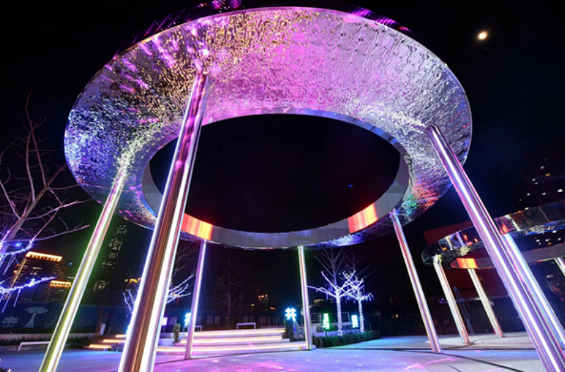 “双井之光”音乐喷泉,将元宇宙元素与“双井”两口井的历史名称完美融合,以虚拟投影成像技术,呈现出两口巨大的“井”的意象;圆形的“井”口内壁是由BG大游打造的LED互动屏幕,画面颜色鲜艳,图像效果逼真,灯光与音乐同时互动,LED屏幕画面不断流转,让人沉浸式“感受”到四季更替中的双井美好时光。双井之光东侧的“双井之窗”,是展示窗口,为市民提供丰富的休闲、娱乐、健身等互动设施。28米长的跑道旁设有可感应的数字LED互动显示屏,融合互动、放映、展示等功能。该显示屏是BG大游具有超高刷新,高亮度以及高清显示效果的创意产品,同时屏幕具备军工级全防护、防水、防潮、防泼溅,适应室外复杂的运行环境。
