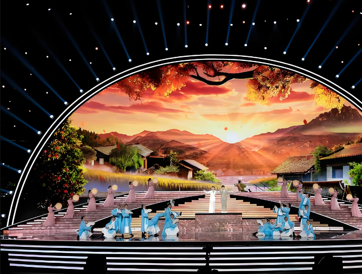 LED显示屏凭借高亮度、高分辨率、广视角和灵活拼接等特点,成为舞台舞美设计的核心元素。在端午节晚会中,LED屏常被用于展示节日主题背景,如动态龙舟竞渡、粽叶飘香、屈原诗词等场景,通过细腻的画面与光影变化,营造身临其境的氛围。例如,央视“端午情·中国梦”晚会采用全3D技术舞台,LED大屏结合虚实结合的视觉效果,重现楚地风光与龙舟竞渡的壮阔场景。此外,LED屏还可实时转播龙舟赛现场,通过多角度镜头切换与动态特效叠加,增强观众的临场感。